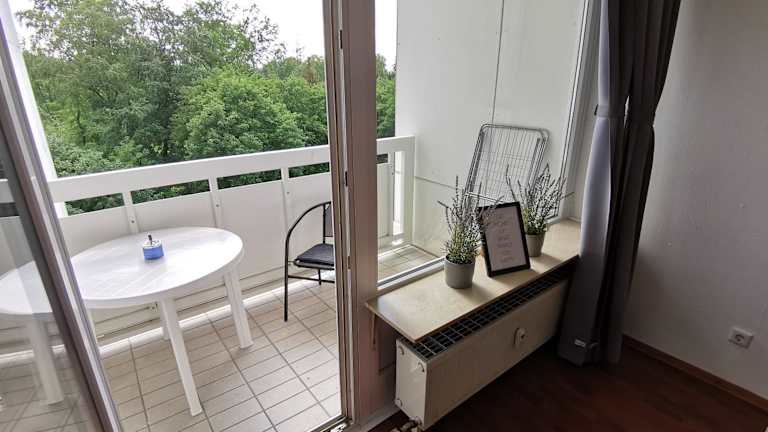 Die Ferienwohnung bietet eine heimelige Atmosphäre mit einem Balkon, der einen schönen Gartenblick bietet. Sie ist bestens geeignet für einen entspannenden Aufenthalt.