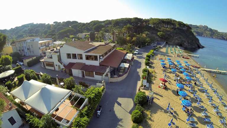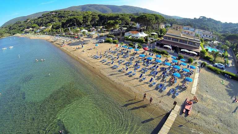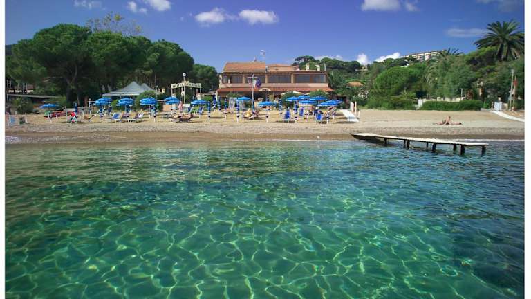 Das Frank's Hotel liegt an seinem eigenen Strand an der Ostküste der Insel Elba, umgeben von mediterraner Vegetation. Es ist nur 10 Autominuten von Porto Azzurro entfernt und der Fährhafen Portoferraio ist nach 25 Fahrminuten erreichbar.