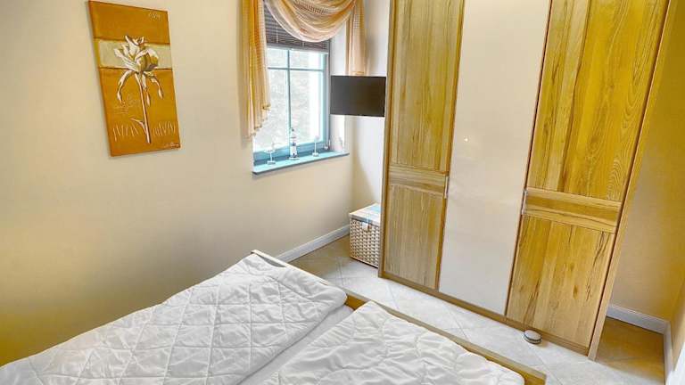 Die Ferienwohnung verfügt über ein Schlafzimmer und eine Küchenzeile. Handtücher und Bettwäsche können gegen Aufpreis bereitgestellt werden.