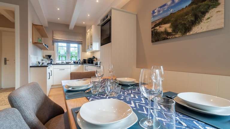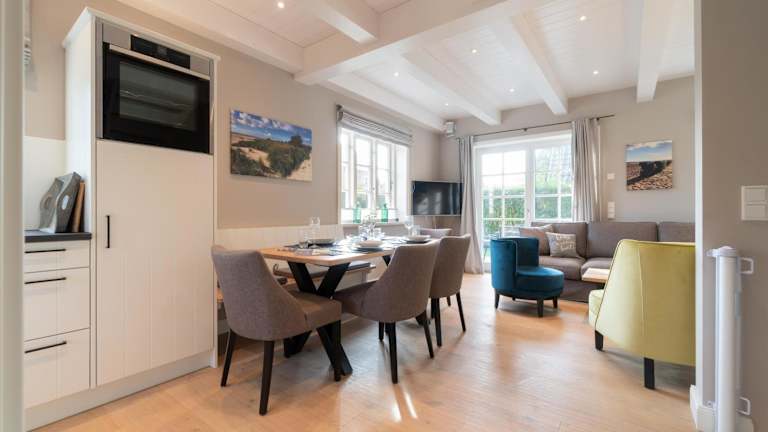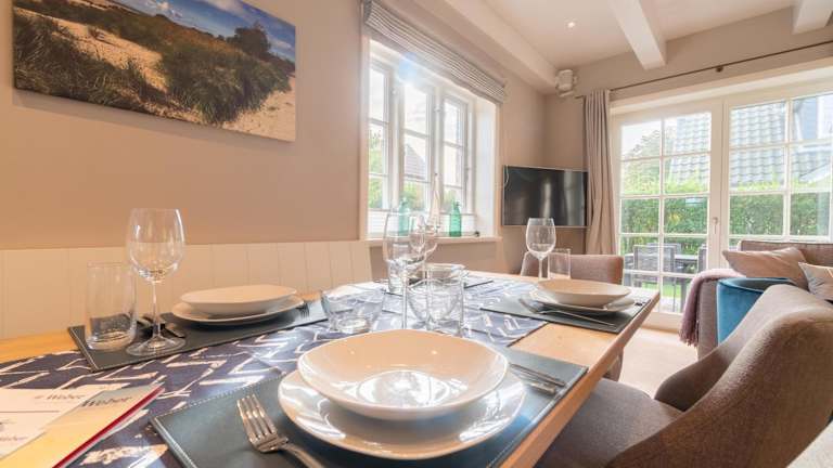 Das Ferienhaus bietet drei Schlafzimmer, eine gut ausgestattete Küche mit Kühlschrank und Geschirrspüler sowie zwei Badezimmer mit Dusche, Haartrockner und Waschmaschine. Handtücher und Bettwäsche werden zur Verfügung gestellt.