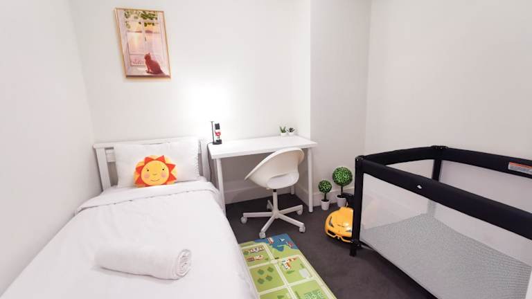 Die Unterkunft verfügt über drei Schlafzimmer, ein Wohnzimmer und eine voll ausgestattete Küche mit Kühlschrank und Wasserkocher. Es sind zwei Badezimmer mit Dusche und kostenlosen Pflegeprodukten vorhanden. Handtücher und Bettwäsche werden bereitgestellt.