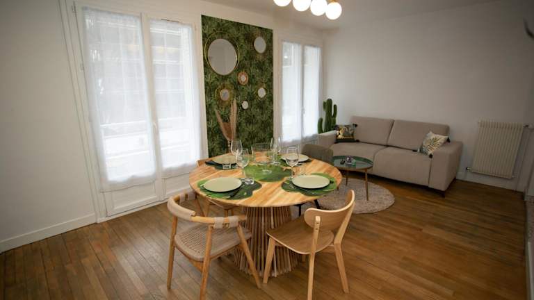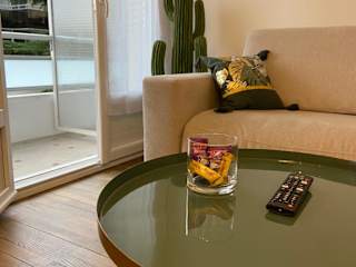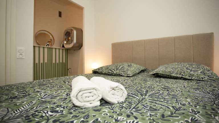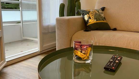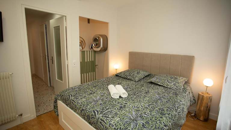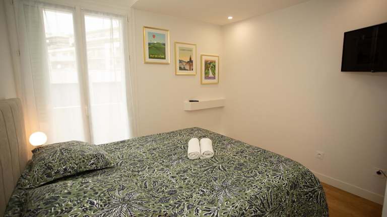 Die Ferienwohnung verfügt über ein Schlafzimmer, ein Wohnzimmer, eine voll ausgestattete Küche mit Kühlschrank und Kaffeemaschine sowie ein Badezimmer mit Dusche und Haartrockner. Handtücher und Bettwäsche werden bereitgestellt. Alle Zimmer sind schallisoliert und klimatisiert.