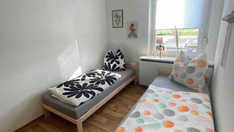 Die Ferienwohnung umfasst zwei Schlafzimmer, ein Wohnzimmer und eine voll ausgestattete Küche mit Kühlschrank und Kaffeemaschine. Zudem stehen ein Badezimmer mit Dusche sowie kostenlose Pflegeprodukte zur Verfügung. Handtücher und Bettwäsche sind ebenfalls vorhanden.