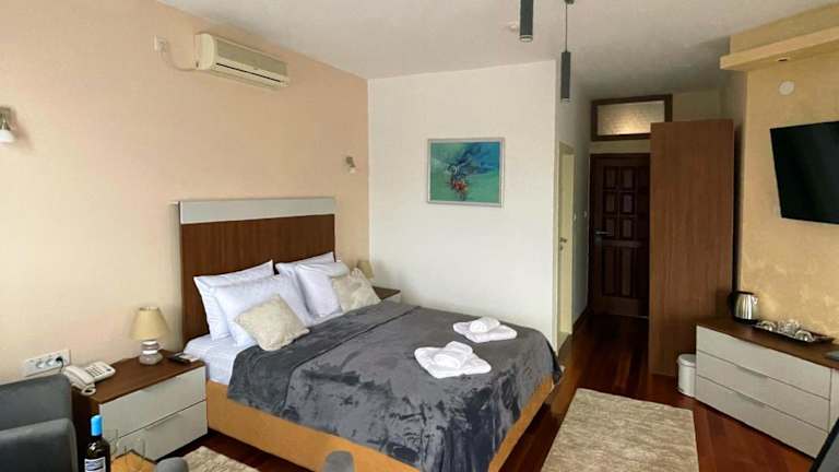 Die Freya SPA Apartments bieten eine heimelige Unterkunft mit einem saisonalen Aussenpool und einem Garten. Die Wohneinheiten sind modern eingerichtet und bieten kostenfreies WLAN, Klimaanlage sowie Annehmlichkeiten wie einen Safe und einen Flachbild-TV. Zur Selbstversorgung stehen eine Küchenzeile und ein eigenes Badezimmer zur Verfügung. Einige Apartments verfügen zudem über eine Terrasse oder einen Balkon mit Blick auf die Stadt oder den Pool.