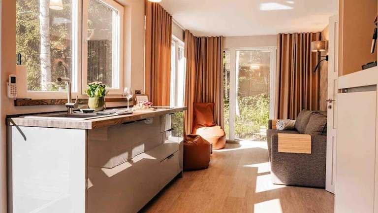 Die Unterkunft verfügt über ein Schlafzimmer und ein Wohnzimmer. Eine gut ausgestattete Küche mit Kühlschrank, sowie Handtücher und Bettwäsche gehören zur Ausstattung. Die klimatisierten Zimmer tragen zur Bequemlichkeit während des Aufenthalts bei.
