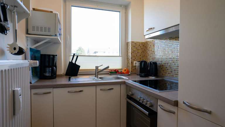 Die Ferienwohnung verfügt über zwei Schlafzimmer, einen TV und eine voll ausgestattete Küche. Diese Küche enthält einen Kühlschrank, einen Geschirrspüler, eine Waschmaschine, einen Ofen sowie eine Mikrowelle.