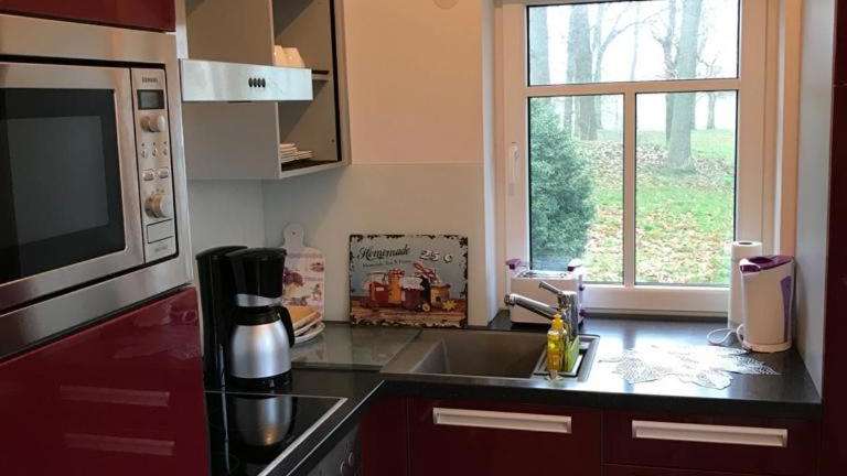 Die Unterkunft beinhaltet eine Küchenzeile, ausgestattet mit Kühlschrank, Mikrowelle, Toaster, Kaffeemaschine und Wasserkocher, sodass eine Selbstversorgung möglich ist.