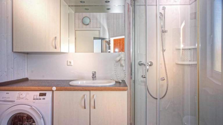 Das Ferienhaus umfasst 2 Schlafzimmer und ein Badezimmer mit Dusche. Zur Ausstattung gehören Kühlschrank, Kaffeemaschine und weitere Annehmlichkeiten, um den Aufenthalt angenehm zu gestalten.