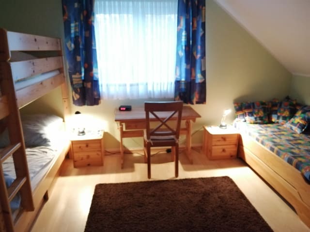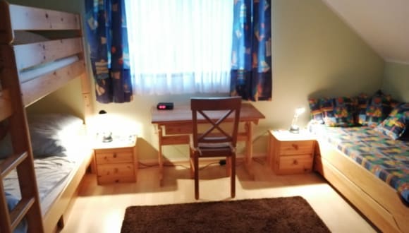 Die Ausstattung: Hier erhalten Sie einen ersten Einblick in die umfangreiche Ausstattung: Räume Erdgeschoß: - Wohn-Esszimmer - Badezimmer mit Dusche und WC - kleiner Abstellraum - Küche - Diele Räume Obergeschoß: - Schlafzimmer mit Doppelbett (ca. 180 cm x 200 cm) - Kinderzimmer mit Etagenbett (jeweils ca. 90 cm x 200 cm) separates Bett & Babybett - Diele - separates WC im Obergeschoß sonstiges: - gemeinsamer Fahrrad-Abstellraum - Terrasse - eigener Stellplatz - Gemeinschaftsgarten Allgemein - Nichtraucherhaus - Tierfrei - W-LAN - Satelliten-Flachbild-Fernseher - Telefon (deutsches Festnetz) - Fliesen oder Laminat in allen Räumen - zentrale Heizung- und Warmwasserversorgung - elektrische Rollläden in den Schlafzimmern - Fußbodenheizung im Erdgeschoss - Terrasse - Gartenstühle & Gartentisch (Frühjahr bis Herbst) - Gartenbenutzung - Kinderbett mit Wickelauflage - Kinderhochstuhl - 3 Erwachsenen-Fahrräder (28 Zoll) & 2 Kinder-Fahrräder (20 Zoll) - Waschmaschine gegen Gebühr - Wäschetrockner gegen Gebühr Küche: - Kaffeemaschine - Wasserkocher - Spülmaschine - Kühlschrank mit Gefrierfach - Toaster - Mikrowelle - 4-Platten Ceranfeld - Dunstabzugshaube - Einbaubackofen Bitte beachten Sie: Mitzunehmen sind: Hand- und Geschirrtücher, außerdem Bettwäsche. Die Nutzung von Bettwäsche ist Pflicht. Alle vorhandenen Bezüge sind reine Schonbezüge.