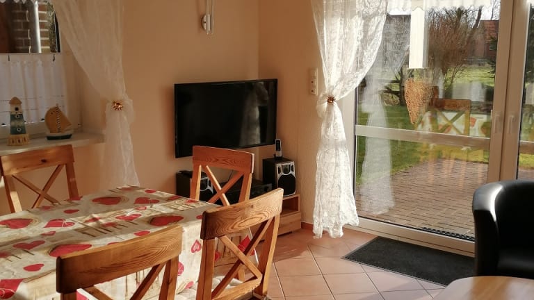 Das komfortabel ausgestattete Ferienhaus steht in dem ruhigen alten Sielort in Altfunnixsiel, zwischen Wittmund und Carolinensiel. Altfunnixsiel ist ein idealer Ort um die ostfriesische Küste zu erkunden - zu Fuß, mit dem Fahrrad oder zu weiter entfernten Zielen auch mal mit dem Auto. Altfunnixsiel ist gut angebunden durch die Bundesstraße B461 (Wittmund - Carolinensiel). Durch den Ort selbst führt nur eine kleine Straße ohne viel Durchgangsverkehr. Ein kleiner Kinderspielplatz ist fußläufig in wenigen Minuten erreichbar. Unser privat vermietetes Ferienhaus wurde 2000 erbaut und verfügt über eine gehobene Ausstattung. Zu dem zweigeschossigen Reiheneckhaus mit ca. 69 qm Wohnfläche gehört eine große Terrasse mit Gartenmöbeln und einem gemeinschaftlich genutzten Garten. Das Grundstück ist mit Sträuchern und Blumen eingefasst. Von der Terrasse und dem Garten haben Sie freien Blick auf eine weitläufige Pferdekoppel und die freie Natur. Alle Räume sind mit modernen Möbeln eingerichtet und wirken hell und freundlich. Wir sind ständig bemüht, Ihren Urlaub in unserem Ferienhaus so angenehm, wie möglich zu gestalten. Gerne nehmen wir auch Ihre Anregungen entgegen. Der rund 7 km entfernte Badeort Carolinensiel-Harlesiel ist über einen gut ausgebauten Fahrradweg entlang der B 461 oder über kleine Nebenstraßen mit dem Fahrrad gut zu erreichen.