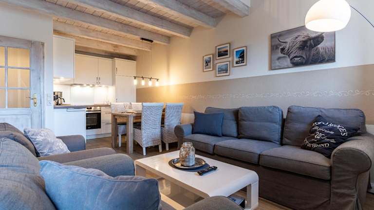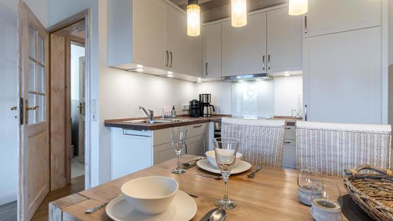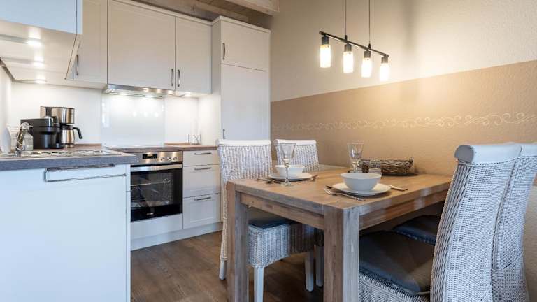 Die Ferienwohnung Friesenhof App 4 Seesternchen bietet eine Terrasse, ein Schlafzimmer, ein Wohnzimmer sowie eine gut ausgestattete Küche mit Kühlschrank und Geschirrspüler. Zudem steht den Gästen ein TV zur Verfügung.