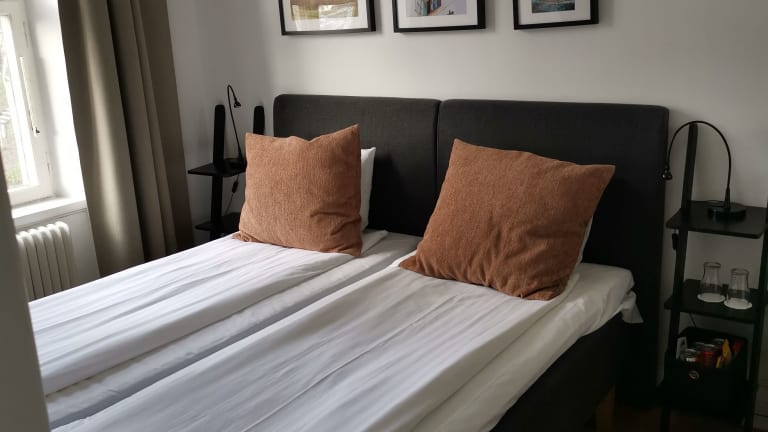 Die Zimmer sind individuell gestaltet und verfügen über ein Doppelbett sowie eine Heizung für ein behagliches Raumklima. Alle Zimmer sind mit einer Minibar, einem Schreibtisch und modernen Kommunikationsmöglichkeiten wie einem Telefon und gratis Wifi ausgestattet. Jedes Zimmer hat ein eigenes Badezimmer mit Dusche und Badewanne sowie einen Haartrockner. Es gibt sowohl Familien- als auch Nichtraucherzimmer.