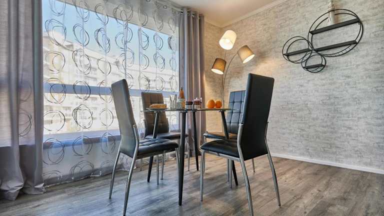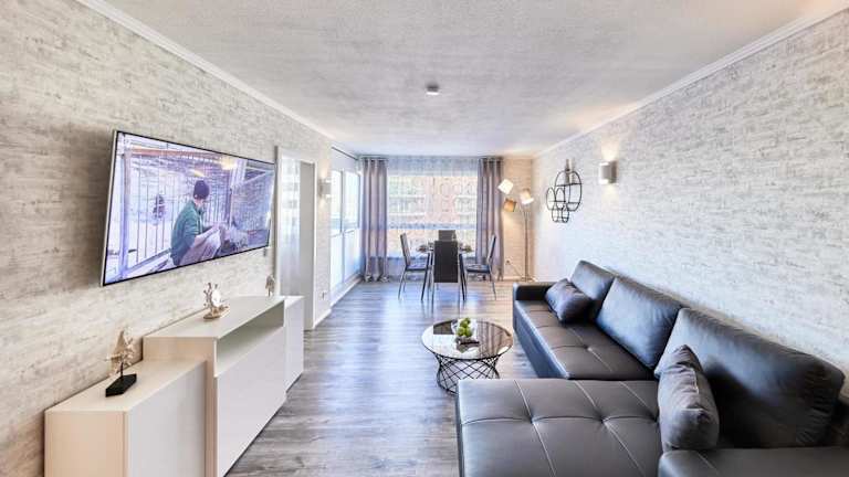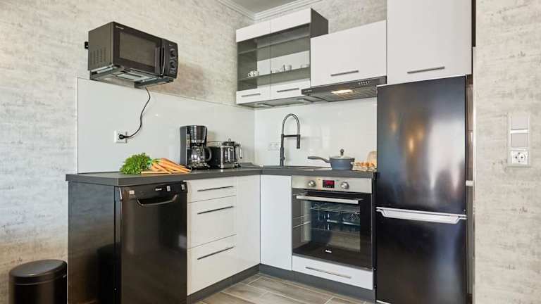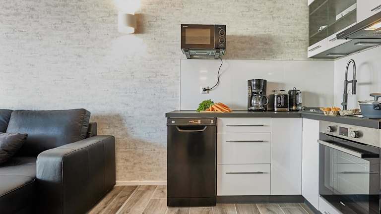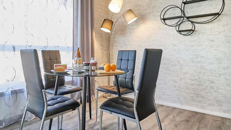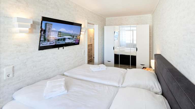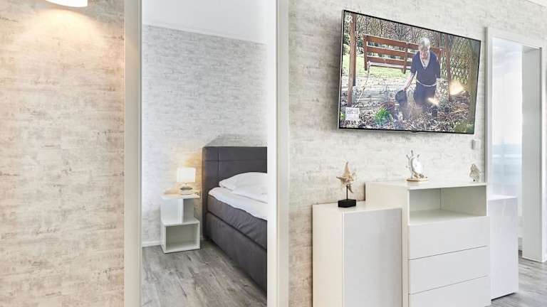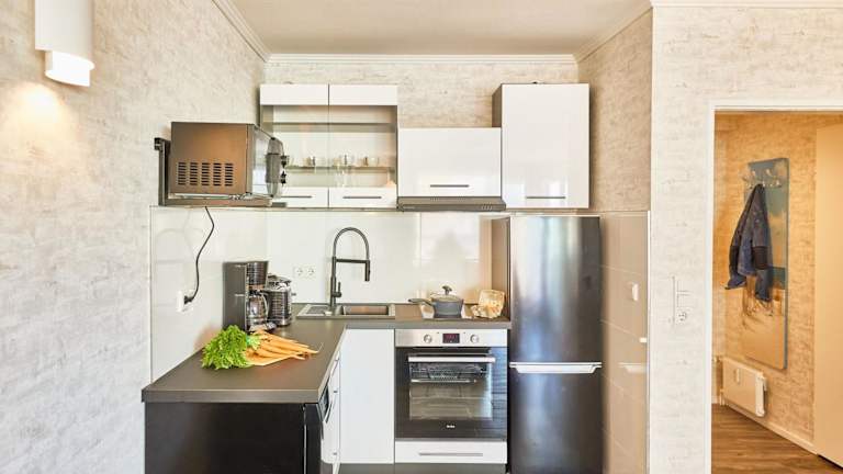 Die Ferienwohnung bietet ein Schlafzimmer, ein Wohnzimmer mit Flachbild-TV sowie eine gut ausgestattete Küchenzeile mit Kühlschrank und Geschirrspüler. Ein Badezimmer mit Dusche gehört ebenfalls zur Ausstattung. Für zusätzlichen Komfort können Handtücher und Bettwäsche gegen Aufpreis bereitgestellt werden. Allergikerfreundliche Zimmer sind auf Anfrage verfügbar.