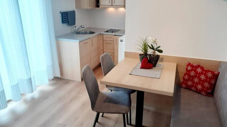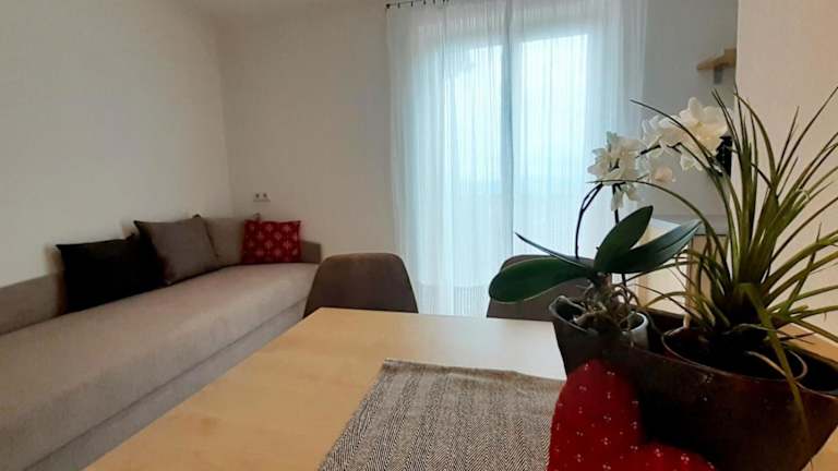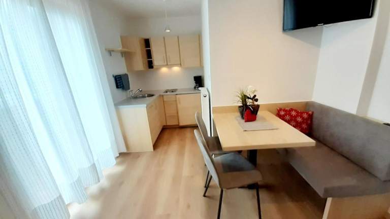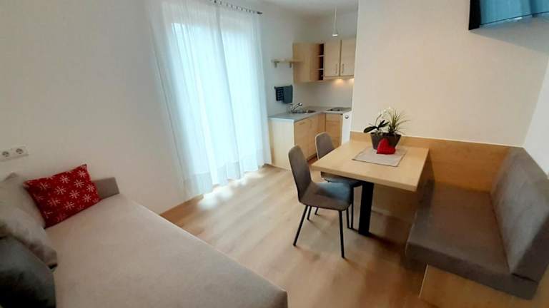 Die Wohnung beinhaltet ein Schlafzimmer und ein Badezimmer. Ausgestattet ist sie mit Bettwäsche und Handtüchern sowie einem TV mit Satellitenkanälen. Eine voll ausgestattete Küche ist ebenfalls vorhanden, ebenso wie ein Balkon, der einen schönen Blick auf die Berge bietet.