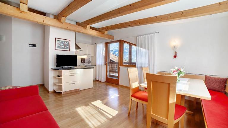 Die Wohnung verfügt über 2 Schlafzimmer und 1 Badezimmer. Zur Ausstattung gehören Bettwäsche, Handtücher, ein TV mit Satellitenkanälen sowie eine voll ausgestattete Küche. Ein Balkon mit wunderschönem Bergblick rundet das Angebot ab.