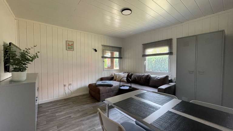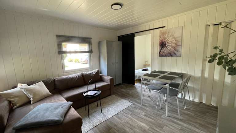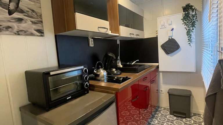Das Ferienhaus im Erdgeschoss bietet 1 Schlafzimmer, eine gut ausgestattete Küche mit Kühlschrank, ein Wohnzimmer und einen Flachbild-TV. Handtücher und Bettwäsche werden bereitgestellt und eine Terrasse steht ebenfalls zur Verfügung.