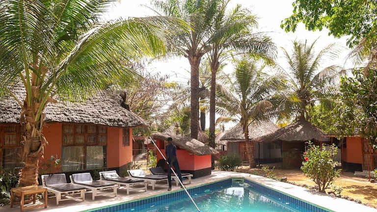 Die Fromagerlodge befindet sich in Cap Skirring, nur 4 km vom Flughafen Cap Skirring entfernt. In der Nähe liegt der Basse-Casamance National Park, der sich etwa 22 km entfernt befindet. Diese Umgebung bietet sowohl die Möglichkeit zur Erholung in der Natur als auch den Zugang zu verschiedenen Aktivitäten.