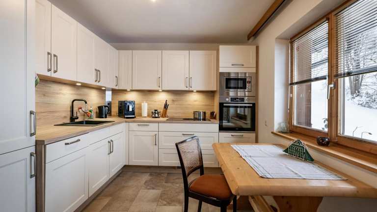 Die Fuchs Alm umfasst eine grosszügige Ferienwohnung mit einem Balkon, zwei Schlafzimmern und einem Wohnzimmer. Die Einrichtung ist heimelig und bietet alles, was für einen angenehmen Aufenthalt nötig ist. Die gut ausgestattete Küche erlaubt es Gästen, ihre eigenen Mahlzeiten zuzubereiten.