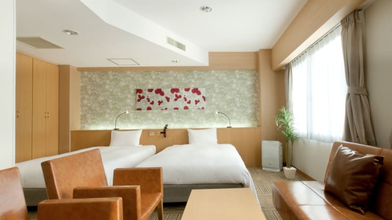 Die modern eingerichteten Zimmer sind klimatisiert und verfügen über ein Doppelbett. Jedes Zimmer ist mit einem Kühlschrank, einem Wasserkocher für grünen Tee, einem hölzernen Schreibtisch, einem Telefon, einem TV-Gerät sowie kostenfreiem LAN-Internetzugang ausgestattet. Die Badezimmer sind mit einer Dusche, einem Bidet und Kosmetikartikeln versehen. Rollstuhlgerechte Zimmer sind ebenfalls buchbar.
