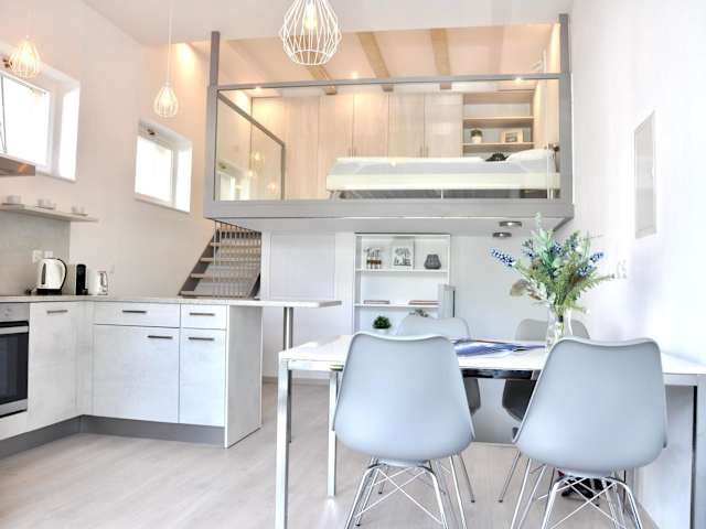 Die Ferienwohnung besteht aus 1 Schlafzimmer und einem Wohnzimmer. Sie bietet eine voll ausgestattete Küche mit einem Kühlschrank und einer Kaffeemaschine. Zudem gibt es 1 Badezimmer mit Dusche und kostenlosen Pflegeprodukten. Handtücher und Bettwäsche werden zur Verfügung gestellt.