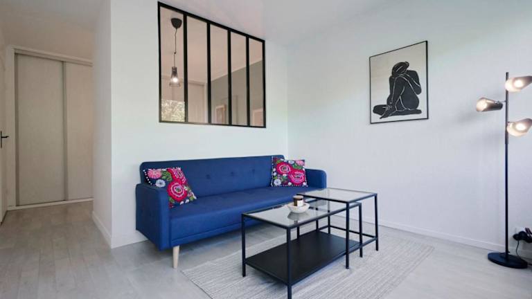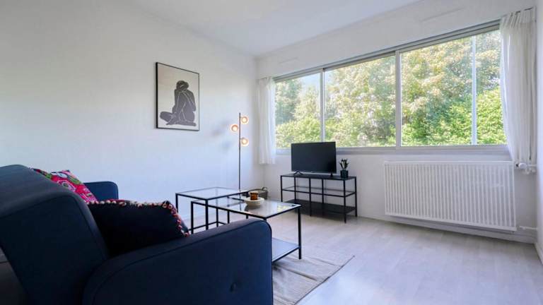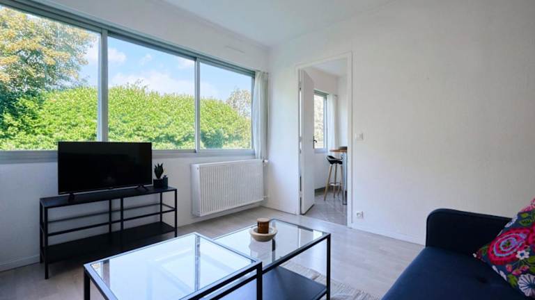 Die Unterkunft Functional studio+ Parking close to the tramway bietet ein gemütliches Wohnzimmer mit einem TV. Es handelt sich um ein funktionales Studio, ideal für einen kurzen Aufenthalt.