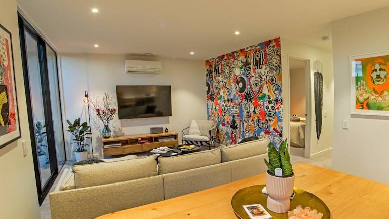 Die Unterkunft Funk in the City - Luxury Laneway Apartment with Single Garage bietet eine heimelige Atmosphäre mit einem Balkon und einer Terrasse. Ein kostenloser Privatparkplatz ist ebenfalls vorhanden.