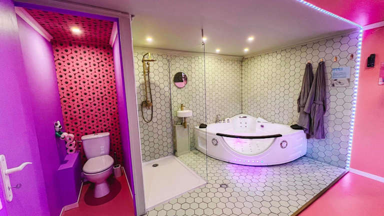 Funky House SPA - Jacuzzi - Salle de cinéma & Netflix - Billard - Nintendo switch & jeux bietet eine einzigartige Ferienwohnung im Erdgeschoss mit einem Whirlpool. Die Unterkunft ist mit verschiedenen Annehmlichkeiten ausgestattet und bietet eine heimelige Atmosphäre für die Gäste. Die Rezeption ist rund um die Uhr besetzt und die Mitarbeitenden sprechen Arabisch, Englisch und Französisch.