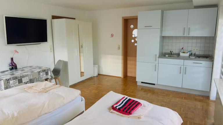 Die G.O.D. Ferienwohnung bietet eine voll ausgestattete Küche, in der Sie Ihre eigenen Mahlzeiten zubereiten können. Ein Kühlschrank, ein Kochfeld und ein Wasserkocher stehen Ihnen zur Verfügung. Alternativ können Sie in der Umgebung verschiedene Restaurants und Cafés besuchen und die lokale Küche genießen.