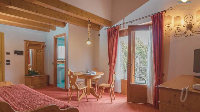 Die Zimmer bieten ein angenehmes Raumklima dank Klimaanlage und Heizung. Jedes Zimmer ist mit einem Balkon oder einer Terrasse ausgestattet, die einen Blick auf die Berge ermöglichen. Die Zimmer sind mit einem Doppelbett oder einem Sofabett, einem Safe, einer Minibar, einem Schreibtisch sowie einem TV-Gerät ausgestattet. Zudem stehen den Gästen in den Badezimmern Kosmetikartikel, ein Föhn, Bademäntel und eine Auswahl an Handtüchern zur Verfügung. Es werden Familien- und Nichtraucherzimmer angeboten.
