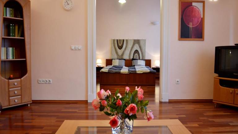 Die Unterkunft Gabriel Apartment befindet sich sehr gut gelegen im Zentrum von Budapest, nur 500 m von der St.-Stephans-Basilika entfernt. In der Nähe gibt es interessante Sehenswürdigkeiten wie die Ungarische Staatsoper, die Grosse Synagoge in der Dohány utca und das Haus des Terrors. Der nächstgelegene Flughafen, der Flughafen Budapest Liszt Ferenc, ist 14 km entfernt.