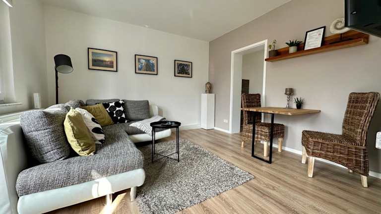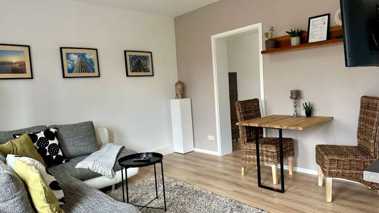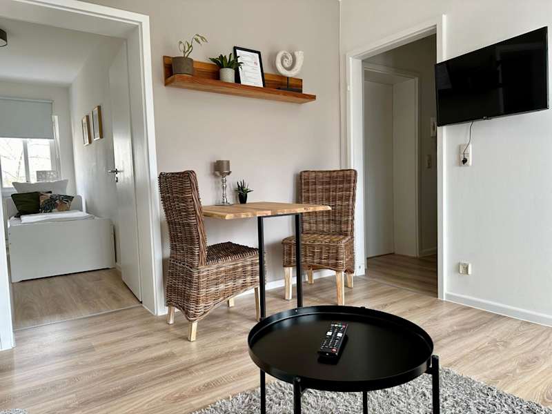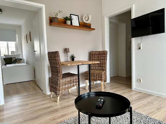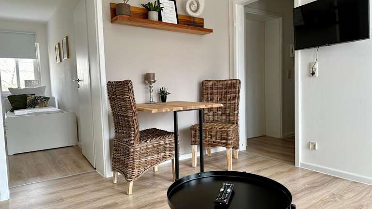Die Ferienwohnung besteht aus 2 Schlafzimmern, einem Wohnzimmer sowie einer voll ausgestatteten Küche mit Kühlschrank und Wasserkocher. Des Weiteren steht ein Badezimmer mit Dusche und Haartrockner zur Verfügung. Handtücher und Bettwäsche werden für die Gäste zur Verfügung gestellt.