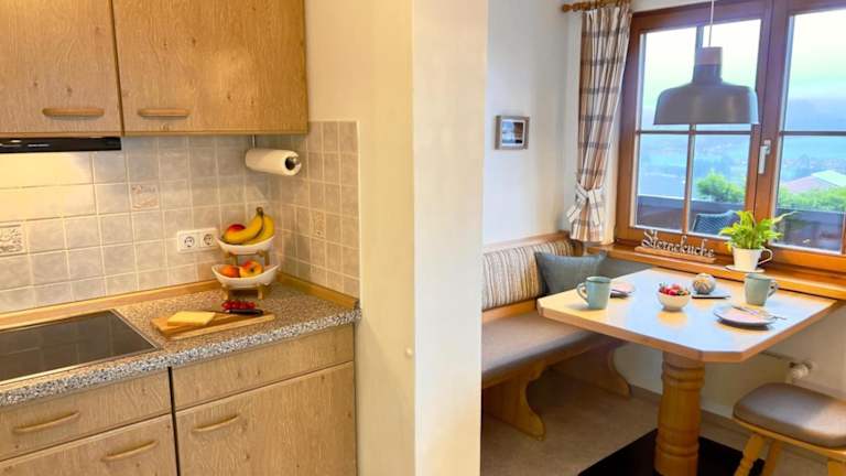 Die Ferienwohnung im Gästehaus Alpenruh verfügt über einen Balkon mit Blick auf die Berge und bietet ein Schlafzimmer, ein Wohnzimmer sowie ein Badezimmer mit Dusche. Die gut ausgestattete Küche umfasst einen Kühlschrank und eine Herdplatte. Zu den Annehmlichkeiten zählen ein Flachbild-TV sowie die Bereitstellung von Handtüchern und Bettwäsche.