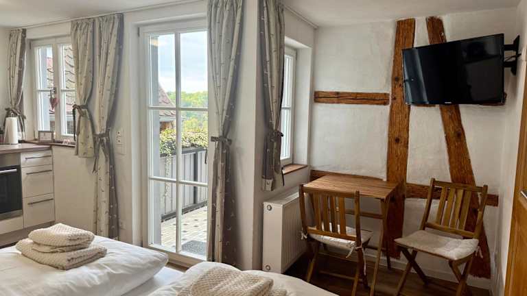 Die Unterkunft befindet sich im Zentrum von Rothenburg ob der Tauber, umgeben von der charmanten Altstadt und historischen Sehenswürdigkeiten.