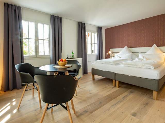 Die Unterkunft Gästehaus am Schlossplatz, Z. 1 liegt in Meersburg, 22 km von der Messe Friedrichshafen entfernt und bietet einen schönen Stadtblick. Die Umgebung lädt zu Aktivitäten ein und stellt eine gute Anbindung an Sehenswürdigkeiten, darunter das MAC - Museum Art & Cars sowie der Hauptbahnhof Lindau, bereit.
