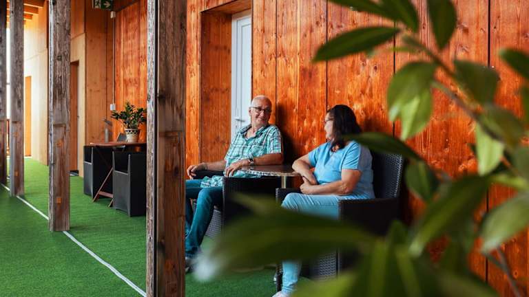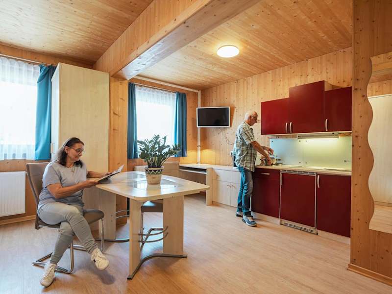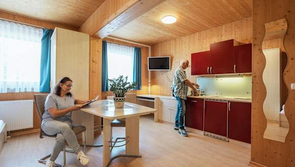 Die Wohneinheiten des Gästehauses Aquilin sind mit einem Balkon ausgestattet. Einige dieser Einheiten haben zudem eine Küche, die mit Kühlschrank, Mikrowelle und Herdplatte ausgestattet ist.