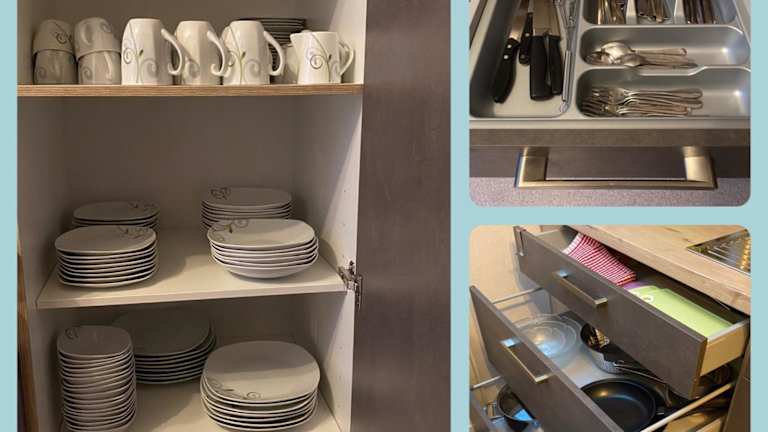 Jede Wohneinheit im Gästehaus Beranek verfügt über einen Balkon, eine Küche mit Kühlschrank und Herdplatte, einen Essbereich sowie einen Flachbild-TV. Ein eigenes Badezimmer mit Dusche ist ebenfalls vorhanden.