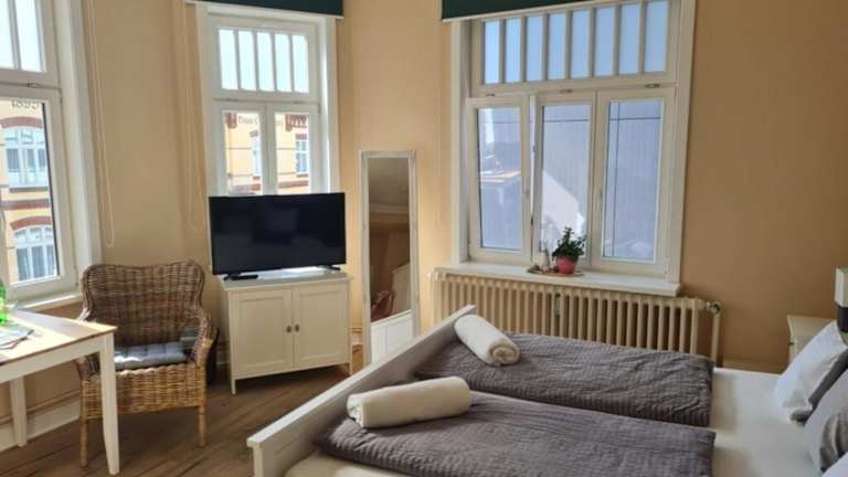 Die Unterkunft Gästehaus Cafe Orth Zimmer3 befindet sich in Westerland, nur 400 m vom Strand entfernt. Die Freizeiteinrichtungen wie das Freizeitbad Sylter Welle liegen 300 m entfernt, während das Sylt Aquarium in einer Distanz von 900 m zu finden ist. Der Tierpark Tinnum ist 3,5 km entfernt, das Sylter Heimatmuseum 5,6 km. Die nächste Bahnstation in Westerland ist 2 km entfernt, und der nächstgelegene Flughafen, der Flughafen Sylt, liegt 3 km von der Unterkunft entfernt.