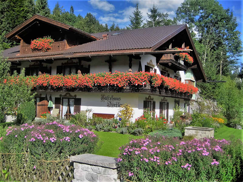 Das Gästehaus Dörfler liegt im Zentrum von Grainau inmitten eines großen Gartens und bietet Ihnen 6 komfortabel ausgestattete Ferienwohnungen um Ihre Urlaub in Grainau angenehm zu verbringen. In nächster Umgebung können Sie sämtliche Freizeitaktivitäten warnehmen die Ihnen unsere Umgebung bietet. Direkt an unserem Haus ist eigens für unsere Feriengäste ein Parkplatz. Die Loipe befindet sich keinen Steinwurf entfernt, Zugspitzbahnhof, das Schwimmbad un Einkaufsmöglichkeiten sind 2 Gehminuten von unserem Haus entfernt. Falls Sie in Ihrem Urlaub lieber Bus anstatt Auto fahren, befindet sich die nächste Haltestelle 200m entfernt von unserem Haus. Um Ihren Urlaubstag ausklingen zu lassen, können Sie sich in unserem großen Garten entspannen oder in einem der zahlreichen Restaurants in Grainau zu Abend essen. Sämtliche Wohnungen sind modern ausgestattet und bieten kostenlosen Internetzugang via WLAN. In unserem Haus stehen ein Skiraum und eine Fahrradgarage zu Ihrer Verfügung.