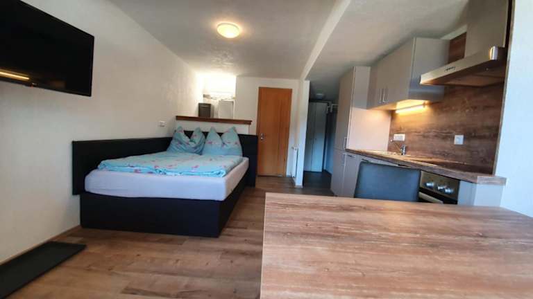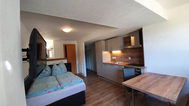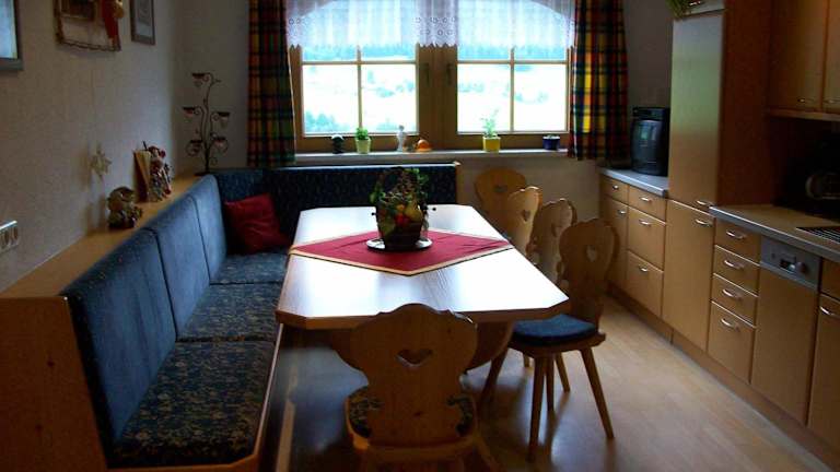 Die Unterkünfte im Gästehaus Flörl verfügen über eine voll ausgestattete Küche, die eine Kaffeemaschine, einen Kühlschrank, einen Geschirrspüler und eine Herdplatte umfasst. Ein Essbereich steht zur Verfügung, um die zubereiteten Speisen bequem zu geniessen.