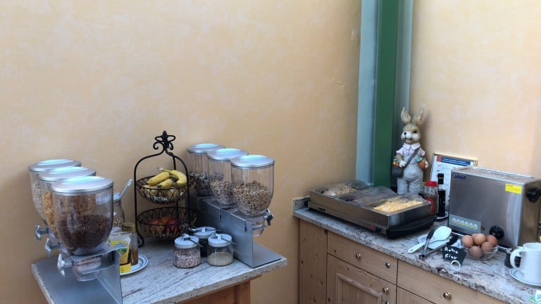 Im Wintergarten des Gästehauses wird ein reichhaltiges Frühstücksbuffet serviert. Es gibt die Möglichkeit, Essenslieferungen in die Unterkunft zu organisieren. Für den kleinen Hunger zwischendurch sind zudem diverse Snacks wie Zvieri erhältlich.