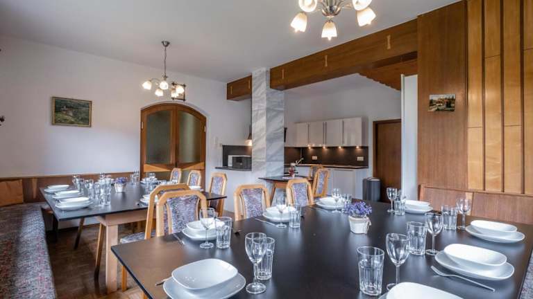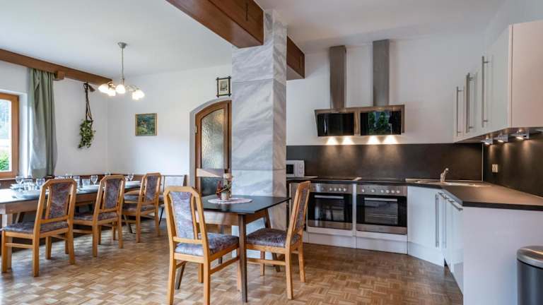 Das Gästehaus besteht aus 12 Schlafzimmern, einem Wohnzimmer und einer voll ausgestatteten Küche, die mit einem Kühlschrank und einer Kaffeemaschine ausgestattet ist. Zudem verfügt die Ferienwohnung über 9 Badezimmer mit Duschen. Zur Unterhaltung stehen ein Fernseher, ein DVD-Player und ein CD-Player zur Verfügung.