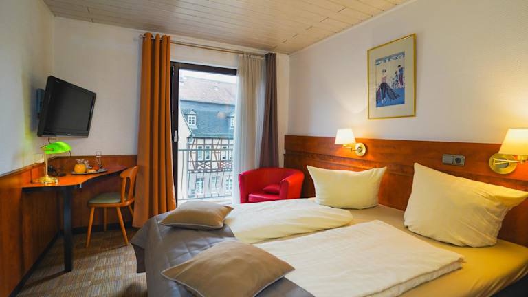 Alle Zimmer verfügen über TV,DU,WC,Föhn und kostenlosen highspeed W Lan 4 Zimmer mit Balkon Sie können wählen zwischen: Doppelzimmer zur Einzelnutzung 68.-€ Doppelzimmer für 2 Personen 42,50€ pro Person Preise ohne Frühstück . Frühstück + 7.-€ und Langzeitapartments. Hierfür erfragen Sie bitte ein Angebot.