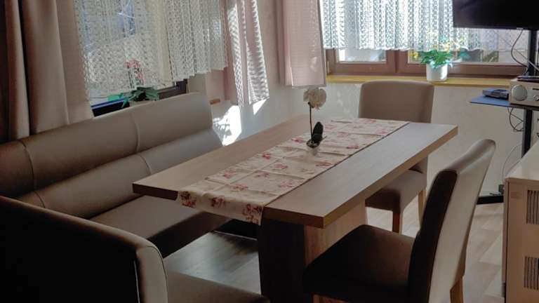 Die Ferienwohnung verfügt über zwei Schlafzimmer und ein Badezimmer mit entsprechenden Annehmlichkeiten. Sie ist ausgestattet mit einem Flachbild-TV mit Satellitenkanälen, einem Essbereich und einer Terrasse, die einen herrlichen Blick auf die Berge bietet. Allergikerfreundliche Zimmer sind ebenfalls verfügbar.