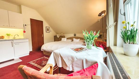 Das Gästehaus Röll - Studio 4 bietet eine komfortable Ferienwohnung mit kostenlosem WLAN. Die Unterkunft ist Nichtraucher, sowohl in den öffentlichen als auch in den privaten Bereichen. Die Mindestalter für den Check-in beträgt 18 Jahre, und Haustiere sind nicht erlaubt. Der Check-in ist zwischen 16:00 und 20:00 Uhr möglich, während der Check-out bis 10:00 Uhr zu erfolgen hat.