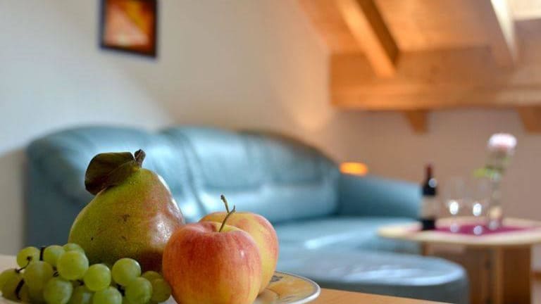 Ferienwohnungen: Größe: Zwischen 50m² und 55m² Einrichtung: Wohnschlafraum mit Kochecke, Elektroherd, Kühlschrank und Kaffeemaschine. Separates Schlafzimmer mit Bad-WC, TV, Radio und zwei Balkone, bzw. eine Gartenterasse. Wäsche und Geschirr sind ebenfalls vorhanden. Zimmer: Doppelbett, Dusche, WC, Bidet und einen Balkon mit schönem Blick auf die Obst und Weinlandschaft, sowie den schönen Ortskern von Kaltern.