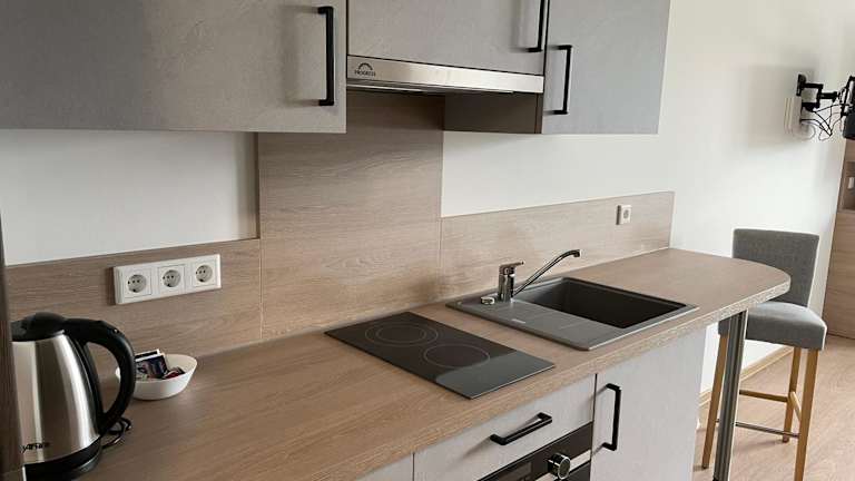 Die Wohneinheiten sind mit einer voll ausgestatteten Küchenzeile inklusive Esstisch, einem Flachbild-TV mit Satellitenkanälen sowie einem eigenen Badezimmer mit Dusche und Pflegeprodukten ausgestattet. Zu den weiteren Annehmlichkeiten gehören ein Kühlschrank, ein Ofen, eine Mikrowelle, eine Kaffeemaschine und ein Wasserkocher.