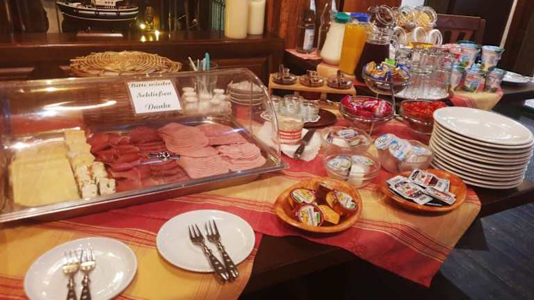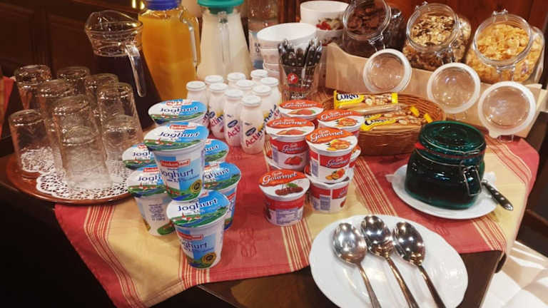 Das Restaurant im Gästehaus bietet die Möglichkeit, verschiedene Speisen zu geniessen, darunter Kindermahlzeiten auf Anfrage. Zudem wird auf spezielle Ernährungsbedürfnisse Rücksicht genommen, sofern dies im Voraus angefragt wird.