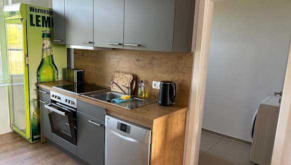 Die Ferienwohnung befindet sich im Erdgeschoss und ist ausgestattet mit zwei Schlafzimmern, einem Flachbild-TV mit Satellitenkanälen sowie einer voll ausgestatteten Küche, die einen Kühlschrank und eine Mikrowelle umfasst. Handtücher und Bettwäsche werden bereitgestellt. Zudem steht eine Terrasse zur Verfügung.