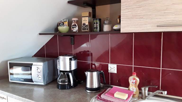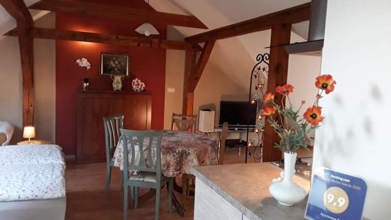 Die Ferienwohnung verfügt über ein Schlafzimmer, ein Badezimmer mit Dusche sowie eine gut ausgestattete Küche mit Kühlschrank und Mikrowelle. Ein Flachbild-TV mit Satellitenkanälen, Handtücher und Bettwäsche sind ebenfalls vorhanden. Allergikerfreundliche Zimmer sind verfügbar, und die Unterkunft bietet schallisolierte Zimmer.