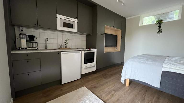Die Gäststuga bietet eine heimelige Unterkunft mit einem Garten, ideal für entspannte Ferien. Die klimatisierte Ferienwohnung ist hochwertig ausgestattet und stellt sicher, dass sich die Gäste wohlfühlen.